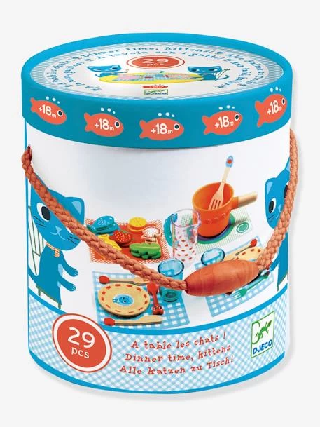 Une dinette de 29 pièces particulièrement bien pensée pour régaler votre petit chaton à partir de 18 mois. Les sets de table apportent une dimension ludique originale, les aliments en feutrine viennent enrichir le jeu : quel plaisir de les distribuer à ses invités ou de les cuisiner. Le petit plus? Cette dinette se range dans un boîte à emmener partout .
