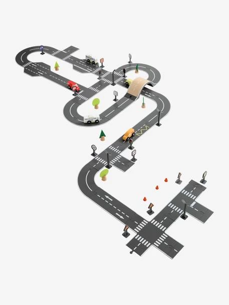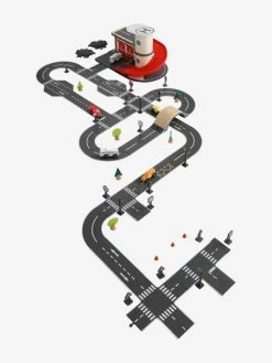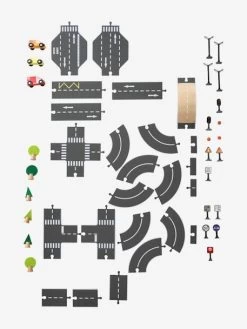 - Contient : 52 pièces: pièces de route, 6 arbres, 4 véhicules, 3 plots, 4 lumières, 10 panneaux