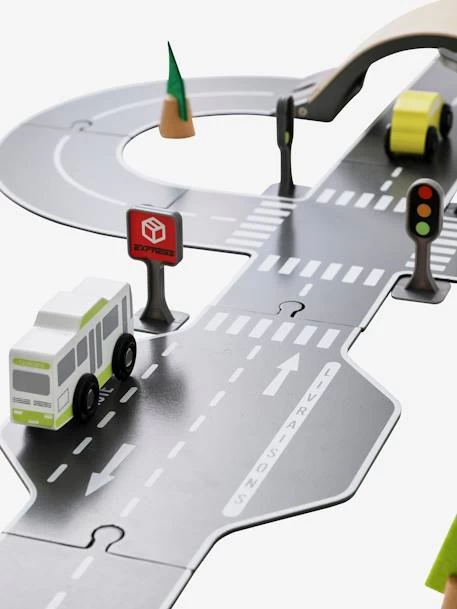 Roulez jeunesse ! Grâce à ce joli circuit, les enfants pourront créer des routes et faire rouler bus, camion et voitures en toute sécurité. Une belle manière de les initier au code de la route en les amusant !