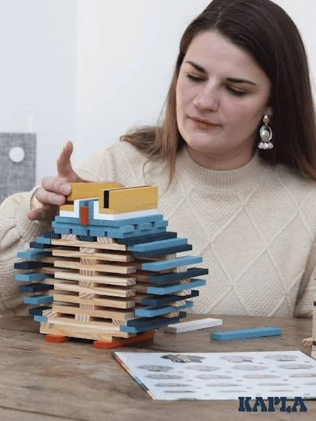 Les planchettes KAPLA®, toutes de taille identique, permettent de créer à l’infini. Les planchettes sont simplement empilées, sans colle ni attache, et le joueur construit au gré de son imagination.