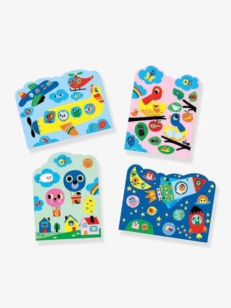 Magique ! Les couleurs se révèlent en passant simplement le stylo à eau sur les 4 planches illustrées du coffret Caché dans le ciel de DJECO ! Faites sécher et recommencez !