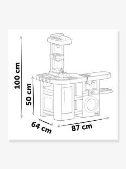 La cuisine Clean Tefal est le jeu d’imitation par excellence ! Cette cuisine incluant un espace mĂ©nage plaira sans aucun doute Ă vos enfants qui pourront jouer seuls ou entre copains. Plusieurs espaces ont Ă©tĂ© imaginĂ©s pour faire durer le jeu : Ă©vier avec robinet, four, frigo, hotte, machine Ă cafĂ©, machine Ă soda, plaque de cuisson avec fonctions sonores… Mais la cuisine comporte Ă©galement une machine Ă laver avec porte ouvrable et tiroir contenant 2 compartiments pour la lessive et l’adoucissant. Une fonction cric crac permet de programmer le cycle de lavage ! Vos enfants pourront Ă©galement y retrouver un Ă©tendoir, une panière Ă linge ainsi qu’une table Ă repasser.