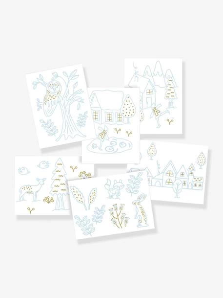 Dans ce nouveau coffret, les enfants dĂ©couvrent deux super feutres pour vitre: un dorĂ© et un bleu clair. Ils y retrouveront aussi 6 modèles et 2 frises Ă coller Ă l’arrière de la fenĂŞtre et Ă dĂ©calquer, magnifiquement illustrĂ©s par Mel Armstrong.