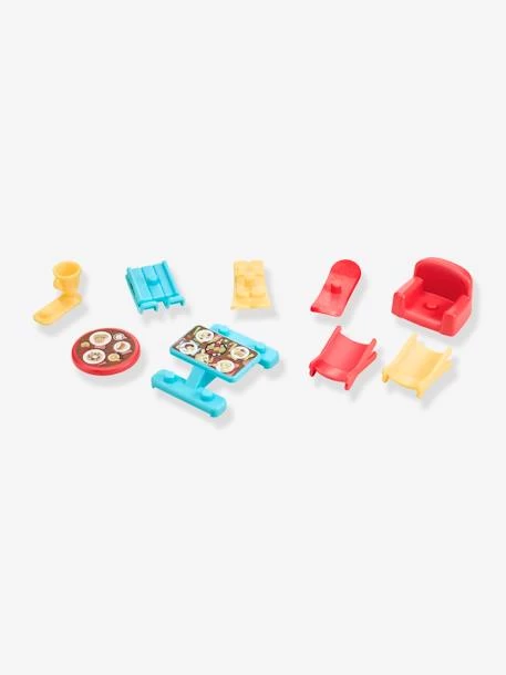 Que d’activitĂ©s dans ce sapin ! Au rez-de-chaussĂ©e, la porte s’ouvre et laisse apparaitre un ski shop avec de nombreux accessoires (skis, snowboards, luge, coupe…). Au premier Ă©tage, un espace repas au coin du feu. Des escaliers rĂ©tractables permettent d’arriver au deuxième Ă©tage et Ă la chambre. Magique, en actionnant le toit pop-up un espace dĂ©tente apparait au troisième Ă©tage avec des chaises longues. Rigolo, un remonte pente permet d’accĂ©der au sommet du sapin et de dĂ©valer la piste!  Amusant, un sapin cache-cache permet d’y glisser ses trĂ©sors! Â