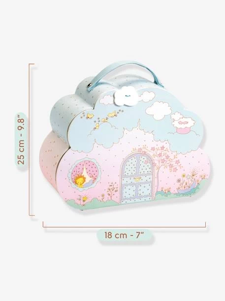 La maison des rayonnants compagnons Sunny et Mia est une adorable valisette en forme de nuage aux illustrations toutes douces. Lorsqu’on l’ouvre, on peut y découvrir un décor de maison de poupées : une chambre, une cuisine, et une table pour manger. De quoi se sentir sur un nuage !