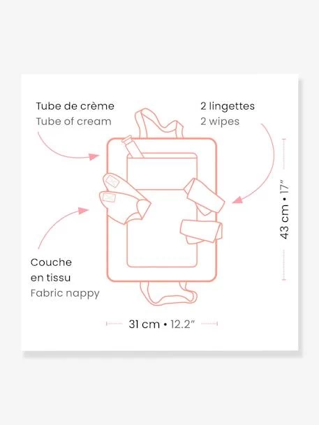 Contenu : 1 sac à langer, 1 couche, 2 lingettes, 1 tube de crème.