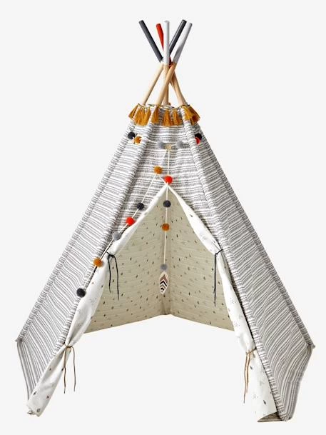 On ne se lasse pas du tipi… surtout quand il est réversible ! Une chouette idée qui permettra aux enfants de choisir entre 2 faces aux imprimés ethniques. Et pour la petite touche finale, 2 guirlandes pompons sont fournies. Pour un tipi au top !
