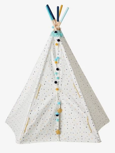 Pour leur permettre de vivre pleinement leur rĂŞves de petits sioux, voici un chouette tipi rĂ©versible à « planter » dans la chambre ! Une face aux motifs triangles, une face parsemĂ©e de petites Ă©toiles, Ă eux de choisir le dĂ©cor qu’ils souhaitent ! Et pour la petite touche finale, le tipi est livrĂ© avec deux jolies guirlandes Ă pompons ! Que l’aventure commence !